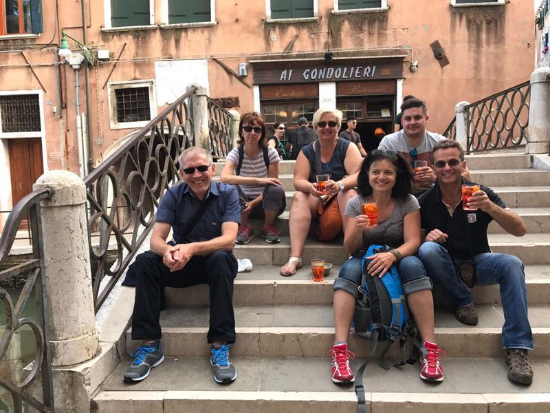 Wir fanden etwas abseits vom Touristenrummel eine kleine Osteria die preiswert Aperol Spritz, Bier und Wein anbot, auch Kleinigkeiten zu Essen. Also eine kurze Pause eingelegt bevor es weiter durch die schmalen Gassen in Richtung Markusplatz ging.