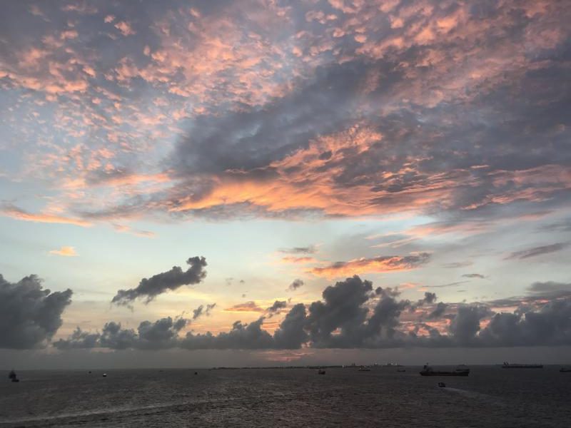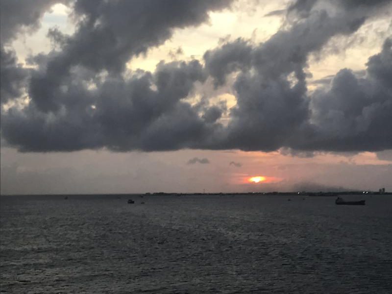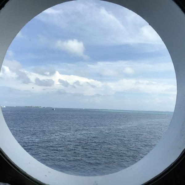 Dann das leere Pool Deck genossen, Platz ohne Ende. Und alles richtiggemacht, der Wetterbericht hatte es gesagt und er kam-der Regen. Nach 2 Tagen im Paradies gewitterte es heftig. Wir genossen unser Mittagessen und machten uns dann auf eine etwas stürmische Überfahrt nach Male.