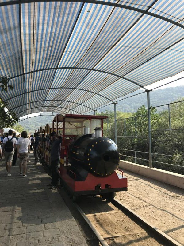 Ein kleines Bähnchen brachte uns den Kilometer bis zu den Stufen, die zu den