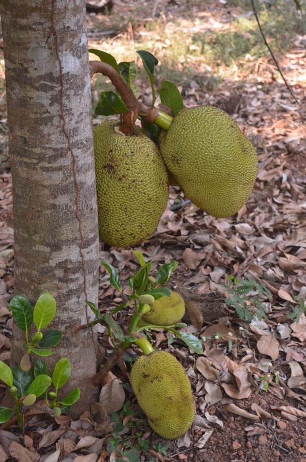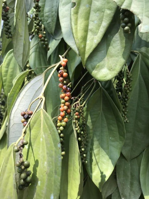 Nach dem Essen führte uns einer der Farmer durch die Gärten und wir bekamen zu sehen was Indiens Natur hervorbringt. Pfeffer, Muskat, Zimt, Zitronengras, Sternfrucht, Bananen, Kaffee, Tee, Avocado……….