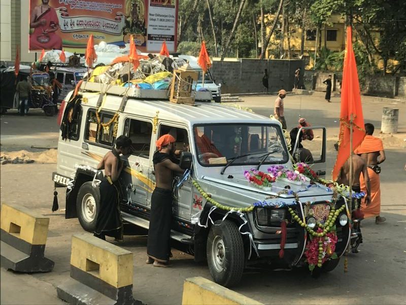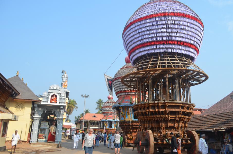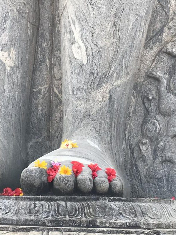 1 ½ Stunden Fahrzeit durch Städte, Dörfer und Palmenhaine nach Karkala und den Jain Tempel mit der Gommateshwara Statue, einer der ältesten Tempel in der Region. 200 Stufen ging es hinauf, es bot sich ein grandioser Ausblick auf die Landschaft