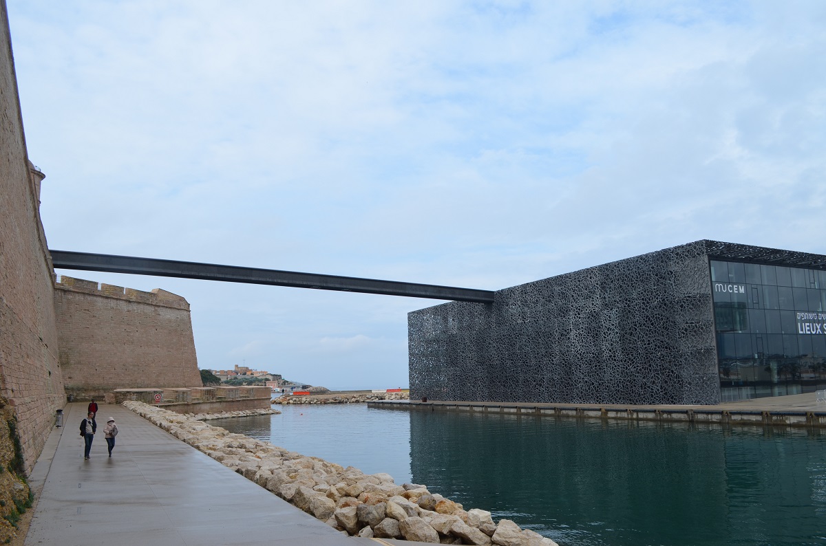 Der Hafenbus hält dann an der Uferstraße unterhalb der Cathédrale Sainte-Marie-Majeure de Marseille. Von dort schlenderten wir bis zum alten Hafen, entlang der modernen Museumsarchitektur, dann um den alten Hafen herum, über den Fischmarkt, wo auch am Sonntag verkauft wurde. Durch die vielen Einkaufsstraßen im weiten Bogen wieder zurück, Lafayette hatte auch am Sonntag geöffnet und bot auf der Gourmetetage so einiges was mein Herz und Magen begehrte. Überhaupt gibt es hier Einkaufsmeilen die durchaus sehenswert sind, ich denke mein Mann war dankbar das am Sonntag nur ein Teil der Geschäfte öffnet.