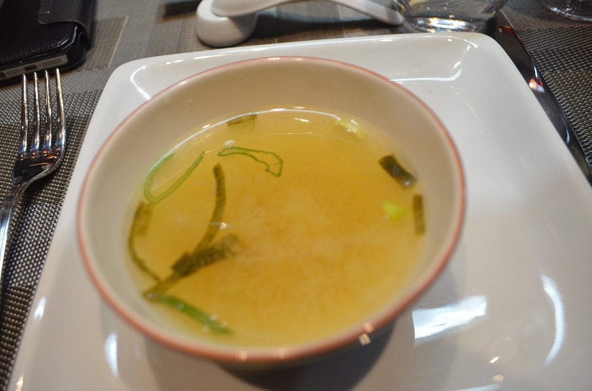 Getränke, Suppe und Salat wurden serviert während die Köche mit viel Witz und kleinen akrobatischen Einlagen mit dem Kochen begannen. Frische Zutaten, gut abgeschmeckt, Küche mit asiatischen Einschlag, nur mit klassischer japanischer Küche an sich hat das Ganze nicht viel zu tun, hatte ich aber auch nicht wirklich erwartet.
