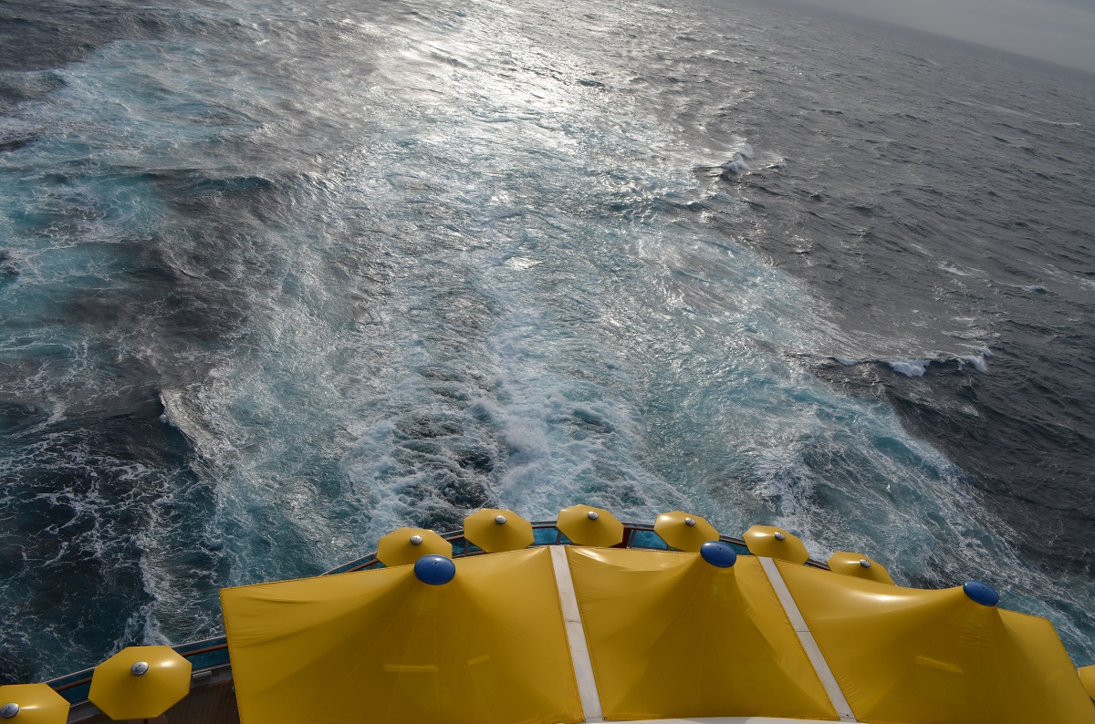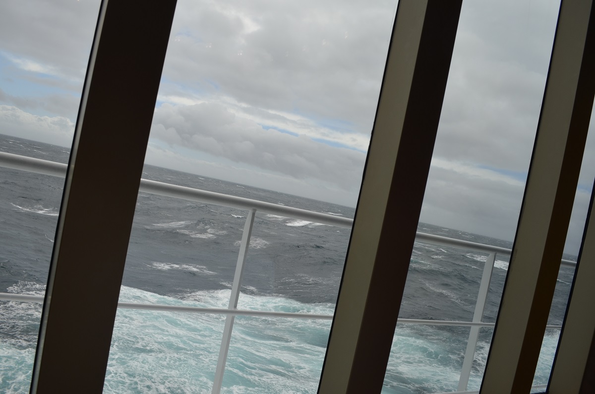 Auf Deck 0 konnte man durch die Bullaugen sehen das wir recht ordentlichen Wellengang hatten, hier oben auf Deck 5 war dies fast nicht spürbar, nur in den Treppenhäusern karrte es manchmal ein wenig.