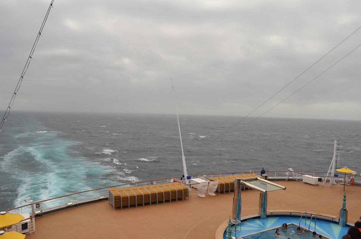 Nach dem ausgedehnten Mittagessen noch einen ausgedehnten Spaziergang über die Außendecks, bei dem schlechten Wetter war ja Platz genug.