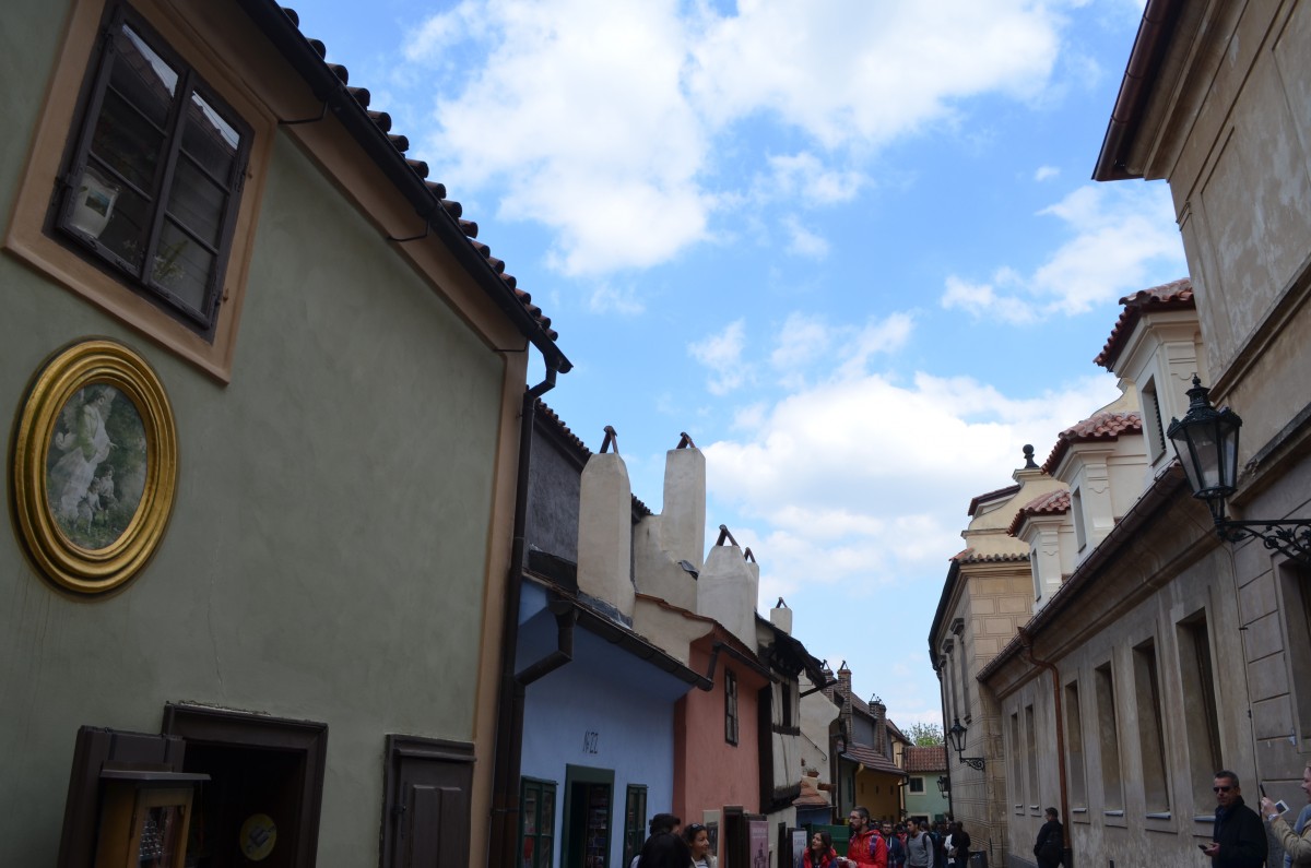 Dann ging es wieder hinaus in die Frühlingssonne und in das Gedränge rund um das Goldene Gässchen. Mitterweile restauriert und nur mit Eintrittskarte zu besichtigen kleben kleine Häuschen am Wehrgang der Burg. Der Wehrgang ist nun auch wieder zu begehen und zeigt Waffen, eine Folterkammer und Kunsthandwerkliches.