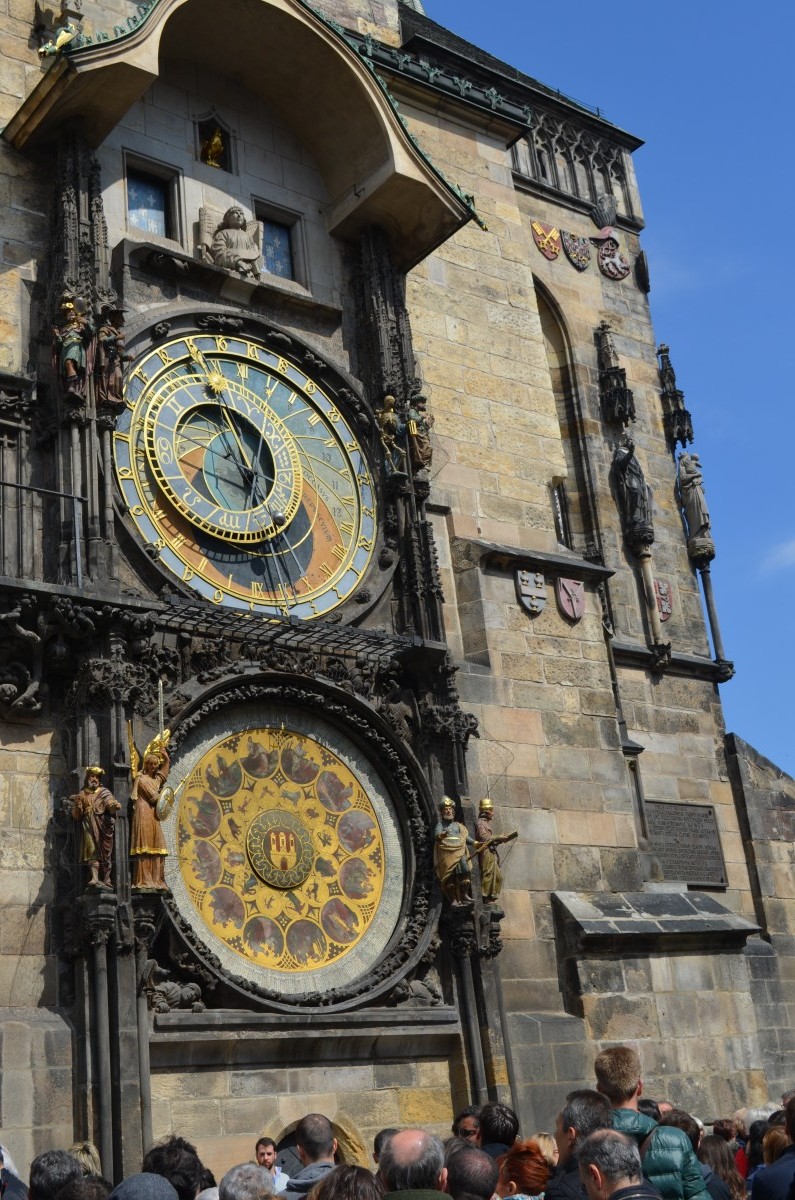 Wir wechselten nun die Moldauseite und vorbei am Rudolphinum schlenderten wir wieder Richtung Wenzelsplatz, nicht ohne einen Abstecher ans Rathaus zu machen, wo wir zur vollen Stunde die über 600 Jahre alte Rathausuhr bewunderten. Der touristische Augenmerk liegt bei den erst 1860 hinzugefügten Apostelfiguren, während die geniale astronomische Uhr als solche kaum wahrgenommen wird.
