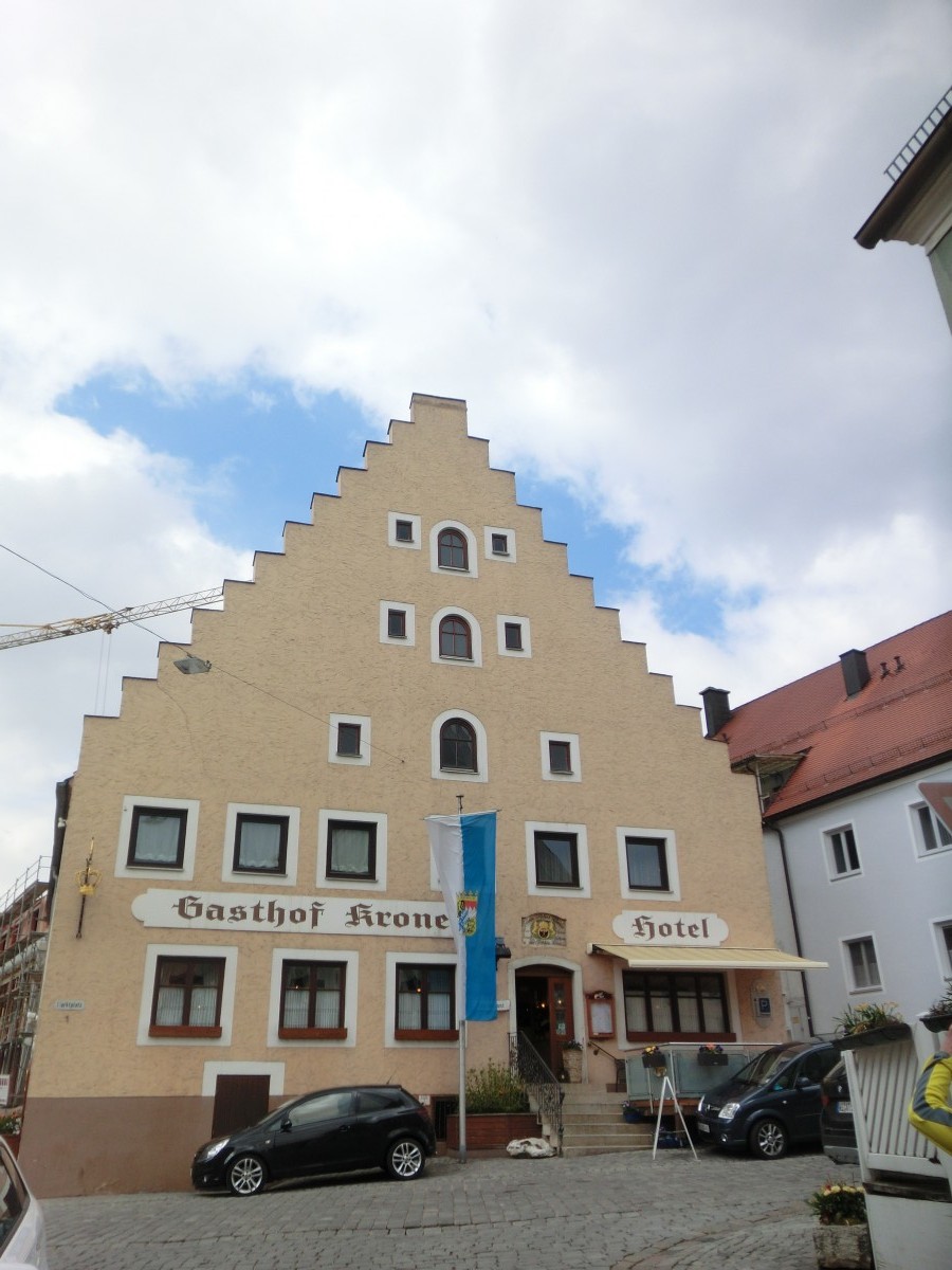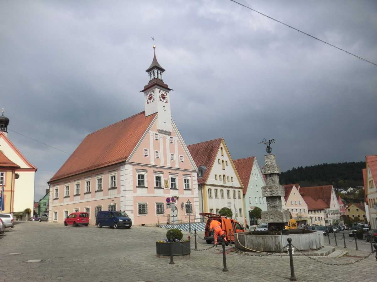 Am Hallenbad wartete unser Auto schon auf uns, wir verstauten die Räder und das Gepäck und machten uns zu Fuß in Altstadt von Greding auf.