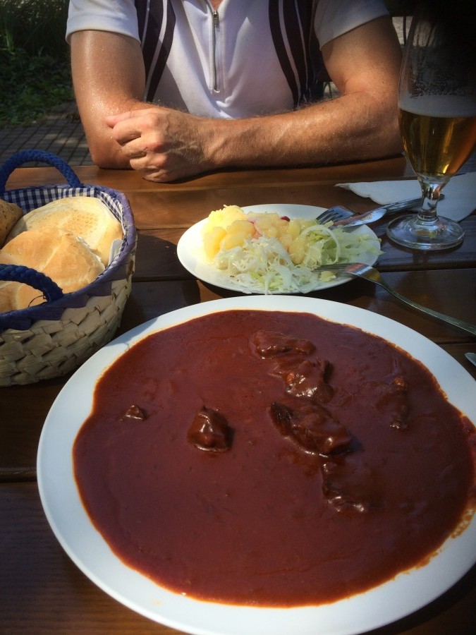 In Klein-Pöchlarn war die Mittagspause geplant, der Dorfwirt ist eines typisch österreichisches Gasthaus mit einem Wirtsehepaar das etwas von guter Bodenständiger Küche versteht und mit großen Portionen zum kleinen Preis aufwartet.