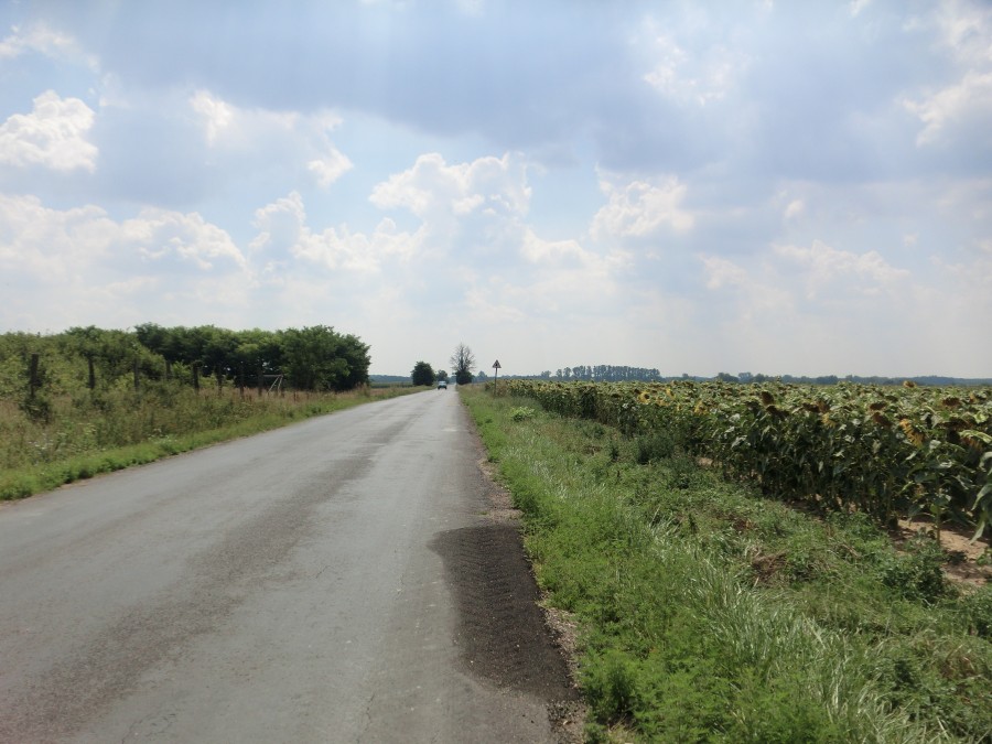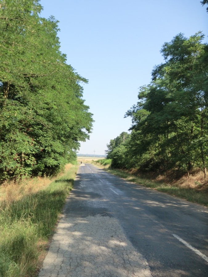Schluss mit Regen, ab sofort war Hitzeschlacht angesagt und so starteten wir sehr früh am Morgen denn unsere Strecke sollte heute über unendlich lange gerade Landstraßen, durch Felder und kleine Dörfer führen, da war wenig Schatten und Abkühlung zu erwarten.