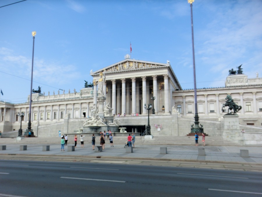 Von Tulln ging es bequem mit der S-Bahn nach Wien zum Franz –Josefs-Bahnhof, dann mit dem Rad quer durch Wien an den wichtigsten Sehenswürdigkeiten vorbei,Pause am Würstlstand, um dann in Meidling in den Zug nach Sopron wieder einzusteigen.