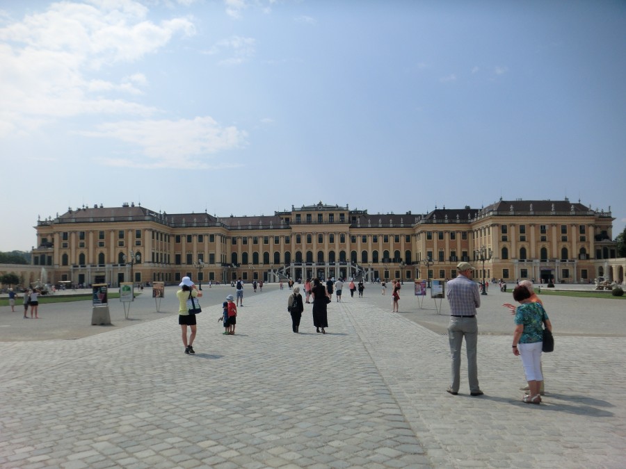 Während es in der Stadt kein Problem mit dem Rad ist läd Schloß Schönbrunn nicht gerade dazu ein es mit dem Rad zu besuchen. Kaum Radlständer und keinerlei Möglichkeit das Rad andereitig unterzubringen, mit Gepäck schon gar nicht. Also warfen wir nur von weiten einen Blick auf das Schloß und fuhren weiter zum Bahnhof.