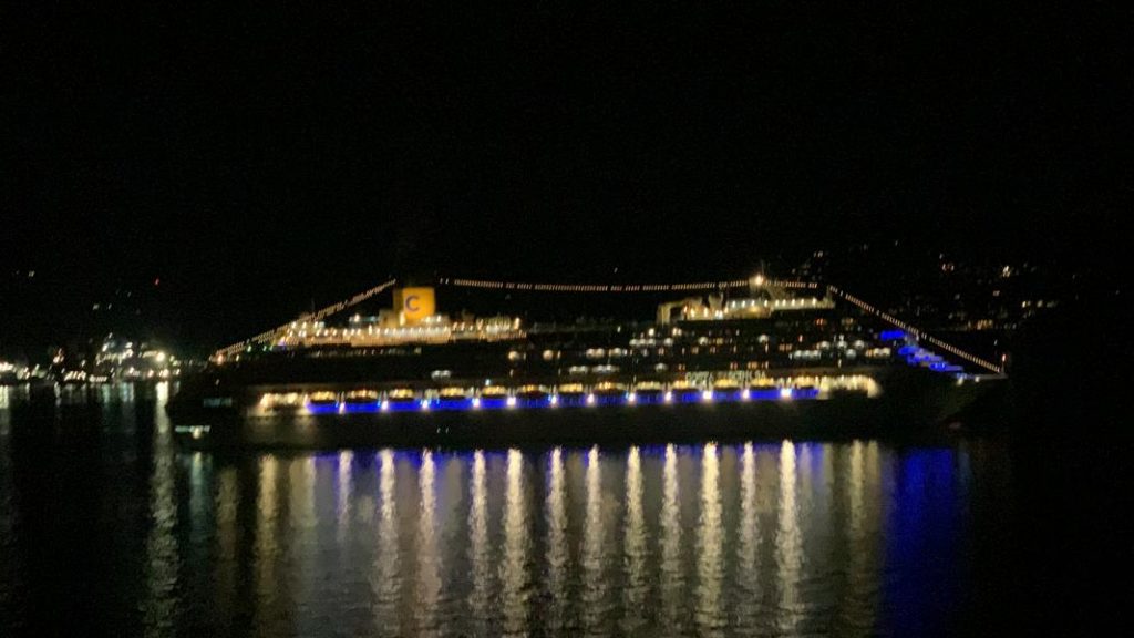 Den Abend verbrachten wir so, wie es so ziemlich die ganze Woche werden sollte. Das Auslaufen der Costa Smeralda beobachten, dann einen Platz im Theatrium suchen um die Show anzusehen und einen Aperativ nehmen. Das Theatrium ist-für mich-leider kein Ersatz für das Theater auf den anderen Costa Schiffen. Es hat nicht den Charme und die Gemütlichkeit des Theaters und ich möchte mit den Kampf um die wenigen Plätze bei einem vollbesetzen Schiff nicht vorstellen. zumal während einer Vorstellung im Hintergrund die Leute an der Bar oder Tischen sitzen, sich in normaler Lautstärke unterhalten, viel Laufpublikum unterwegs ist. Das Theater auf der Costa Smeralda ist auch recht klein und wird auch als Diskothek genutzt.